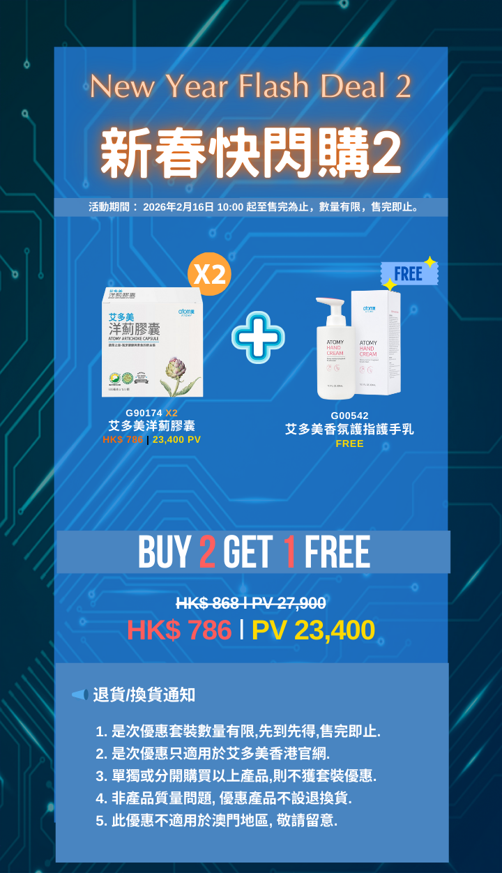- 客服專線3611-7706/電郵至atomy_hk@atomypark.com申請